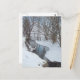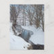 Une photo d'une scène enneigée dans le pays avec des arbres et un ruisseau