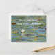 Aquarelle nénuphar Lake Flower, Carte postale. Art numérique. L'une des deux collections d'art de nénuphars et de caleçons, dans le style de Claude Monet. Une fleur blanche entourée de coussins de nénuphars de différentes teintes vertes. Le design peut être personnalisé pour vos besoins ; faites-le vous-même. Excellent design pour une invitation, ou juste pour dire bonjour.