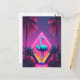 Carte Postale Neon Flamant rose Palmiers Vaporwave Esthétique
