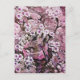 CARTE POSTALE NEST D'OISEAU, ARBRE AUX FLEURS DE PRINTEMPS ROUGE