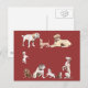 Neuf chiens de races variées, dont bulldog et dachshund. Illustration tirée d'un livre pour enfants de 1918.
