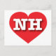 Cette carte postale est dotée d'un coeur rouge vif contenant les lettres coques supérieures et audacieuses NH, l'abréviation officielle du New Hampshire, l'état granitique. Le verso de la carte postale est vide, en attendant vos sentiments manuscrits ou le texte personnalisé.