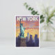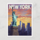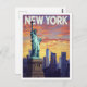 Carte Postale New York Travel Poster: Statue of Liberty Sunset