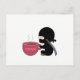 Carte Postale Ninja minuscule avec grande tasse de café