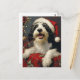 "Prenez la joie de la saison avec notre carte de Noël ornée d'un charmant Collie à épaulettes orné d'un chapeau de Père Noël festif. Ce design chaleureux apporte une touche de fantaisie de vacances et de joie de vivre à vos célébrations. Partagez l'amour et la chaleur avec cet adorable compagnon canin, rendant vos voeux de Noël particulièrement spéciaux."