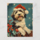 "Prenez la joie de la saison avec notre carte de Noël ornée d'un charmant Collie à épaulettes orné d'un chapeau de Père Noël festif. Ce design chaleureux apporte une touche de fantaisie de vacances et de joie de vivre à vos célébrations. Partagez l'amour et la chaleur avec cet adorable compagnon canin, rendant vos voeux de Noël particulièrement spéciaux."
