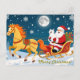 Carte Postale Noël, Nouvel An, Cheval Rouge, Père Noël & Chat Bl
