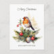 Cette conception présente une aquarelle illustrant le rouge - robin à poitrine perché sur une branche de pin.