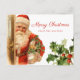 Carte postale de Noël vintage Santa Claus Retro. Un Père Noël victorien du monde ancien qui passe par la porte d'entrée et porte des cadeaux orne cette belle invitation de fête de vacances. Accentué de feuilles sacrés aquarelle. Personnalisez ce design personnalisé avec votre propre salutation.