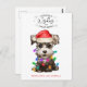 Une carte de Noël amusante avec un mignon chien d'aquarelle dans les lumières de Noël et texte de typographie simple qui dit "Voeux de Noël et Baisers de chien". Changez facilement le texte en Dog Kisses, Puppy Kisses, etc. La partie arrière dispose d'un motif de pattes en forme de coeur. Parfait pour tous ceux qui aiment leur bébé à fourrure.
