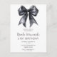 Jolie carte postale d'anniversaire avec invitation à une fête comportant un ruban à noeud de coquette noir. Les mots peuvent être modifiés pour s'adapter à vos propres détails ou exigences