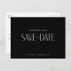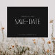 "Save the date" pour mariage. Simple. Site mariage. Un dos noir. Vous pouvez customiser "le" à "notre". Police moderne. Carte postale. Contemporain.