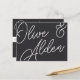 Conçu pour correspondre à nos invitations de mariage Black & White Oversize Script, cette carte postale RSVP basée sur la typographie est parfaite pour les RSVPs par courrier traditionnel. Personnalisez avec votre date RSVP souhaitée et coutume accepter et refuser le libellé dans les lettres serif classiques alignées en bas à droite. Notre colorway de cendres fait une déclaration classique avec des lettres blanches et croustillantes sur un arrière - plan noir doux.