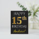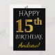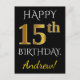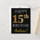 Carte Postale Noir, Faux Or 15e anniversaire + Nom personnalisé