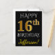 Carte Postale Noir, Faux Or 16e anniversaire + Nom personnalisé