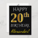 Carte Postale Noir, Faux Or 20e anniversaire + Nom personnalisé