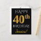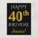 Carte Postale Noir, Faux Or 40e anniversaire + Nom personnalisé