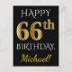 Carte Postale Noir, Faux Or 66e anniversaire + Nom personnalisé