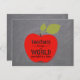 Grosse pomme rouge avec une citation de typographie réfléchie à l'intérieur sur un arrière - plan en tableau noir faisant un enseignant personnalisé grâce donnant un don d'expression. Remplissez le texte et la signature au verso de la carte postale !