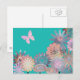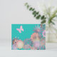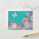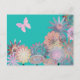 Design turquoise et lumineux, avec un joli motif de fleurs et papillon rose. Personnalisable et unique, ce design floral est coloré et moderne.