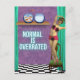 Vignette amusante et amusante inspirationnelle caractéristiques "Normal est surévalué" en police de néon avec femme vintage en maillot de bain mignon debout sur la chaise...n'oublions pas non plus de noter que le poisson rouge saute de la foule dans son propre bol !
