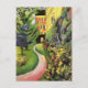 Carte postale avec le tableau du paysage, Our Garden with Flower Beds in Bloom (1912), de l'artiste expressionniste allemand August Macke (1887-1914) qui a perdu la vie dans la Première Guerre mondiale. Un jardin fleuri et un chemin devant une maison jaune.
