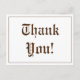 Cette carte postale de remerciement de style vintage comporte le message "Merci !" sur le devant, ainsi qu'un message personnalisé au dos. Elle pourrait être utilisée pour remercier quelqu'un qui a fait quelque chose de gentil.