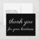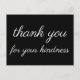 Cette carte postale nostalgique et rétro de remerciement comporte le message "merci pour votre gentillesse" sur le devant, ainsi qu'un message personnalisé au dos. Elle pourrait être utilisée pour remercier quelqu'un qui a fait quelque chose de gentil.