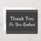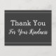 Cette conception de carte postale de remerciement vintage comporte le message "Merci pour votre gentillesse" sur le devant, ainsi qu'un message personnalisé au dos. Elle pourrait être utilisée pour exprimer sa gratitude à quelqu'un qui a fait quelque chose de spécial.