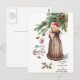 Joy assiste à toi, Fortune t'envoie plusieurs Jours de Noël heureux. Une fille blonde en long manteau nourrit les oiseaux avec de la nourriture provenant d'un cône en papier dans cette carte postale vintage de Noël de 1911.