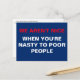 Texte : Nous ne sommes pas gentils quand vous êtes méchant avec les pauvres. Retour : "Je n'ai pas besoin d'être gentil avec personne quand vous êtes méchant avec les pauvres." —Rep Alcee L. Hastings Il y a des républicains qui ne semblent pas avoir d'autre but dans la vie que d'être méchant avec les pauvres. Texte patriotique rouge et blanc sur un arrière - plan bleu. La protestation est patriotique et la résistance fonctionne. La résistance continue chaque jour, à chaque action et à chaque manifestation.