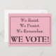 Nous Résistons. Nous Persistons. Nous Nous Souvenons. Nous Votons ! Comme indiqué dans un cadre noir sur l'arrière - plan rose standard. Personnalisable . Les élections sont imminentes. Rappelez-vous, vos amis et vos représentants élus.