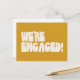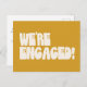 Diffusez l'amour avec cette carte postale faire-part "We're Engaged" amusante et élégante, avec lettrage super rétro sur un arrière - plan jaune moderne et audacieux. Parfait pour les couples qui veulent une façon ludique et dynamique de partager leurs nouvelles passionnantes, ce design combine une typographie d'inspiration vintage avec une touche contemporaine élégante. Imprimé sur une option de carte postale économique, c’est un moyen abordable et joyeux de faire connaître à vos amis et à votre famille vos grandes nouvelles tout en le maintenant moderne et unique.