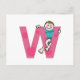 Illustration d'une mignonne petite caricature escalade garçon sur une lettre géante W. Image disponible sur divers cadeaux et produits. Cartes postales.