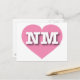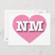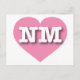 Cette carte postale est dotée d'un coeur rose vif contenant les lettres coques en haut et en blanc NM, l'abréviation officielle du Nouveau-Mexique, terre d'enchantement. Le revers de la carte postale est vide, en attendant votre texte personnalisé ou vos sentiments manuscrits.