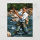 Rénové et numériquement affiche de voyage améliorée montrant un homme marchant dans une rivière et la pêche. Imperfections et larmes enlevées. Couleurs corrigées. Photo publiée avec l'aimable autorisation de Library of Congress.