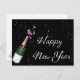 Carte postale Nouvel An avec confettis et bouteill