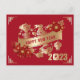 Carte Postale Nouvel An chinois de lapin 2023 Rouge or Floral P