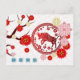 Carte Postale Nouvel An chinois des fleurs de la Pêche aux Ox