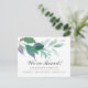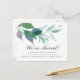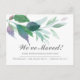 Des annonces émouvantes et botaniques permettent à vos amis et à votre famille de connaître votre nouvelle maison douce! Le design présente une aquarelle botanique dans les tons de violet, turquoise et vert feuilles avec votre faire-part personnalisé (avec "nous avons déménagé"), votre nom(s) et le changement d'adresse. Ajoutez un message personnalisé à vos amis et à votre famille au verso de cette carte postale verte avec espace pour votre timbre et l'adresse du destinataire.
