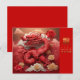 Dragon rouge pâle entouré de pivoines et de nuages. Design sur carte postale horizontale avec Joyeux Nouvel An en or en chinois et petit Joyeux Nouvel An en anglais + 2024 + idéogramme de Dragon en or. Vous pouvez facilement changer la position des éléments (texte, image) ou les supprimer si nécessaire en cliquant sur le bouton "ÉDITER LE DESIGN". Carte de vœux assortie. Parfait pour le Nouvel An chinois du Dragon 2024 ou l'anniversaire (personnes nées sous l'année du Dragon).