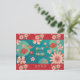 CARTE POSTALE, Carte de Vœux, Invitation. Nouvelle Année Chinoise. Fond d'année lunaire traditionnel avec une élégante pivoine, cerisiers en fleurs, lanternes et fleurs de printemps, paon, fond turquoise. Texte de bonne année chinoise 2025, symbole de chance fortune, style d'art en papier. Conception tendance avec modèle de texte, pour invitations et papeterie, cartes de vœux, CARTES POSTALES.
