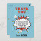 Carte postale de remerciement pour anniversaire avec nuage de texte de bande dessinée de super-héros. Cette merveilleuse carte de remerciement présente un nuage de texte de dessin animé de super-héros avec des étoiles et un charmant message de remerciement. C'est parfait pour exprimer votre gratitude à tous vos proches qui ont assisté à la fête d'anniversaire de votre enfant. Les couleurs vives et le message joyeux feront savoir à tous combien votre enfant apprécie leurs vœux gentils et leurs cadeaux. Rendez la journée spéciale de votre petit encore plus spéciale avec cette délicieuse carte de remerciement !