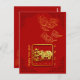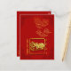 Découpure de papier doré représentant un bœuf dans un carré + Nuages propices chinois dorés (graphisme linéaire) + Cadres chinois rouge foncé dans les quatre coins. Design sur carte postale avec fond rouge et textes : 2021, L'Année du Bœuf et Bonne Année à personnaliser si vous le souhaitez (au recto) et les nuages propices en haut à gauche (au verso). Carte de vœux assortie, invitation, fournitures artisanales, fournitures de fête et plus encore... Parfait pour le Nouvel An chinois du Bœuf 2021 ou pour un anniversaire (personnes nées l'année du Bœuf).