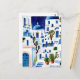 Carte Postale Nuit Santorin Grèce Aquarelle Bleu Blanc Grec