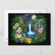 #Tropical #Nights #Carte postale montrant une cascade sous une pleine lune, encadrée de fleurs tropicales