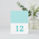 Carte postale simple mais élégante Houndstooth Table Number avec un arrière - plan motif tendance turquoise et blanc houndstooth. Facile à customiser avec vos détails mariages. Pour plus d'options de personnalisation, cliquez sur le bouton Customiser.