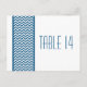 Carte postale Chevron, chic et moderne, avec une bordure simple en chevron motif bleu foncé et blanc. Ce design élégant donnera le ton à un mariage élégant. Facile à customiser, il suffit d'ajouter le ou les numéros de table appropriés dans le champ de texte fourni. Cliquez sur "Customiser" pour trouver d'autres options de personnalisation.