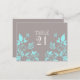 Papillon sucré et dainty Floral Numéro de table Carte postale avec un arrière - plan gris poussiéreux et muet papillons turquoise et ornements floraux de la vigne. Cette élégante carte de table de mariage est le choix idéal pour un mariage moderne et chic. Facile à customiser, il suffit d'ajouter le ou les numéros de table appropriés dans le champ de texte fourni. Cliquez sur le bouton "Customiser" pour trouver d'autres options de personnalisation.