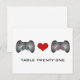 Chic et original, cette jolie carte postale de Mariage Gamer est dotée d'un contrôleur de jeu vidéo avec des boutons bleus et un avec des boutons roses. Un coeur au milieu connecte les deux contrôleurs. Cette carte de table nerveuse est parfaite pour le couple de jeux. Facile à customiser, il suffit d'ajouter le ou les numéros de table appropriés dans le champ de texte fourni. Cliquez sur "Customiser" pour trouver d'autres options de personnalisation.